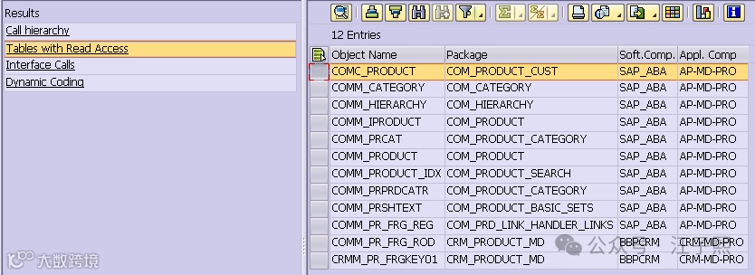 这个观察结果是合理的,因为在 SAP CRM 产品中,以 Product Set Types 为代表的数据访问,大多采用高度动态的 ABAP 编程方式实现。