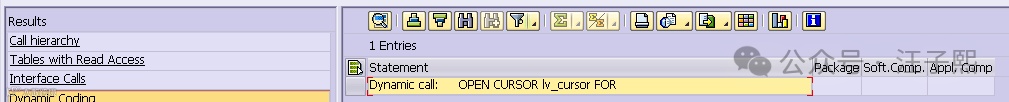 b. Tables with Read Access:静态代码中的表读取操作。需要注意的是,那些通过动态代码实现的表访问,不会出现在这里,而会被归入 Dynamic Coding 类别中。