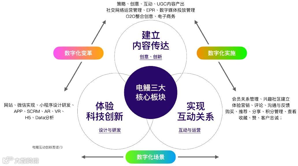 电鳗互动,以赋能企业数字化变革与智慧经营为使命、通过数字化转型咨询战略、数字媒体精准投放管理、年度品牌策略与互动创意、社交网络、直播与网红经济、优质原创内容输出、数据科技等为企业或品牌在全球消费市场提供品牌重塑与创新型数字化整合营销解决方案。
