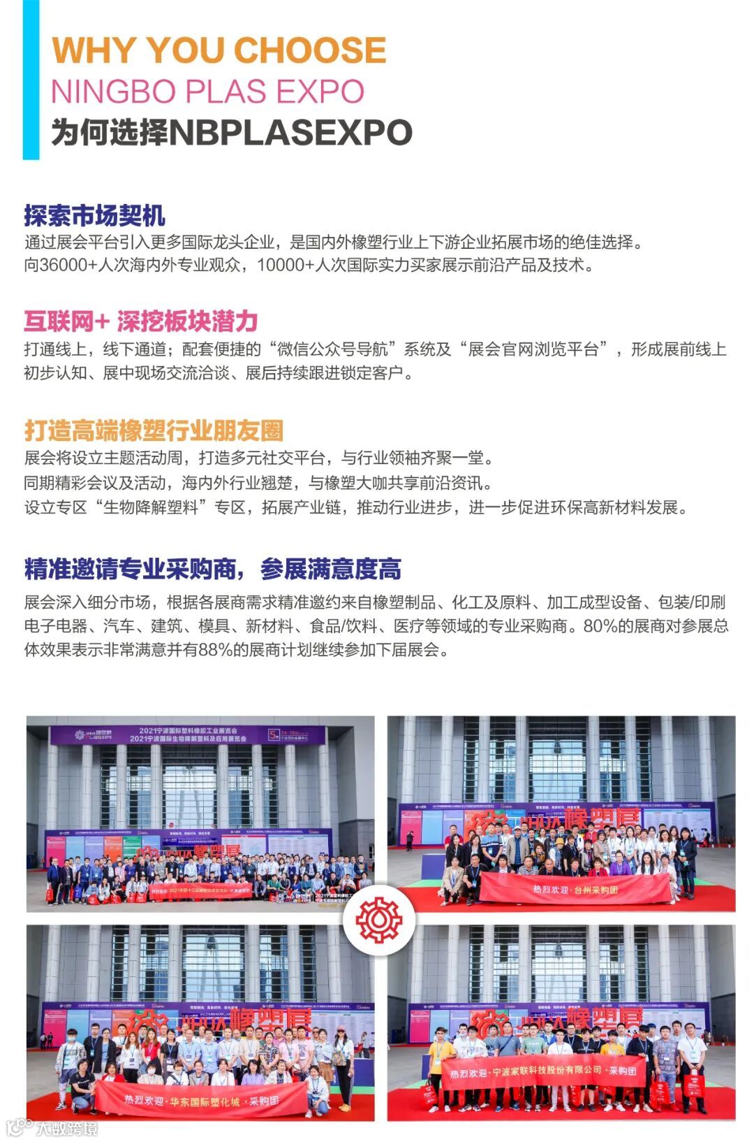 深耕华东市场8年,荣获宁波市“优秀市场化品牌展会”荣誉称号。宁波橡塑工业展规划6大展厅,5大分类覆盖塑料原料、橡胶、弹性体、助剂、再生塑料、可降解塑料、塑料包装、塑料机械、橡胶机械、辅机配件等。