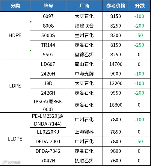 以上是220822期原料报价,由全塑联综合整理,报价行情仅供参考。