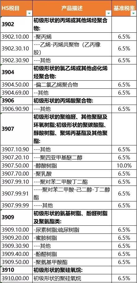 中国对东盟成员国关税承诺共有150个税目的塑料及其制品的关税将直接降为0,占比高达93%!此外,还有10个税目的塑料及其制品的关税,将由原来的6.5%-14%的基准税率,下降至5%。