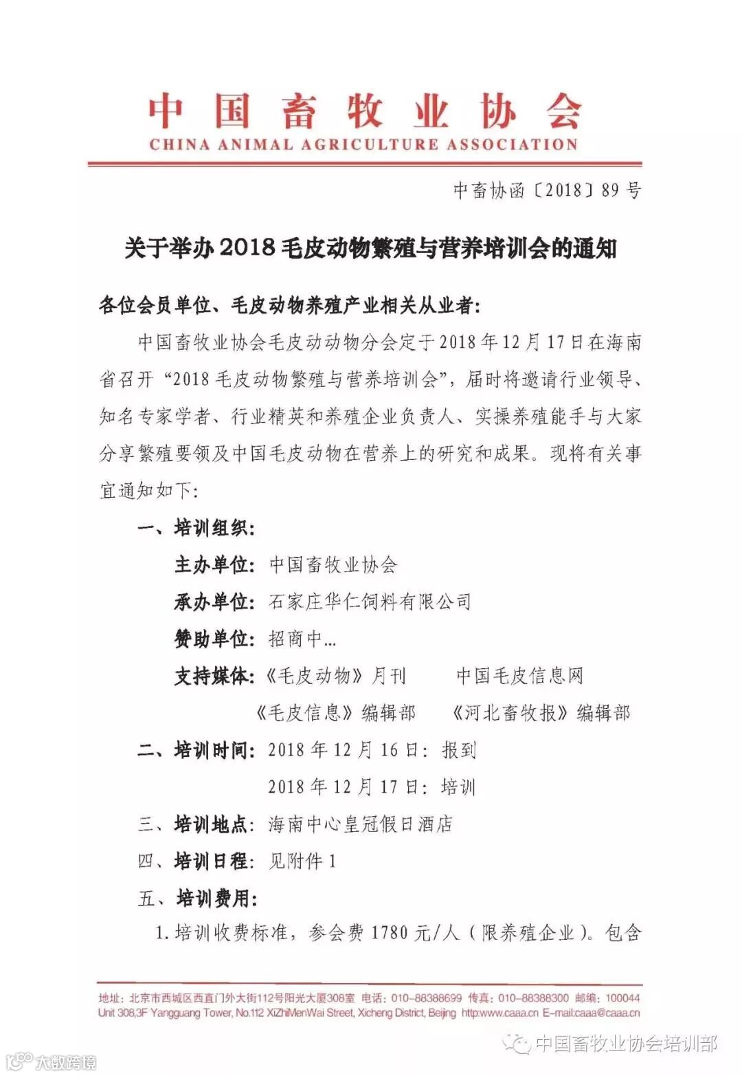 关于举办2018毛皮动物繁殖与营养培训会的通知
