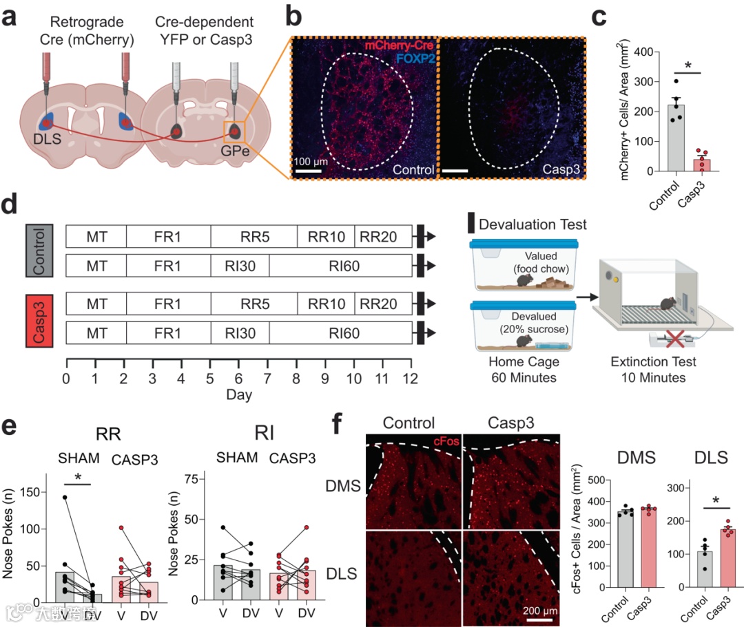 Caspase3依赖性的GPe arky投射的消融使小鼠转向习惯性行为
