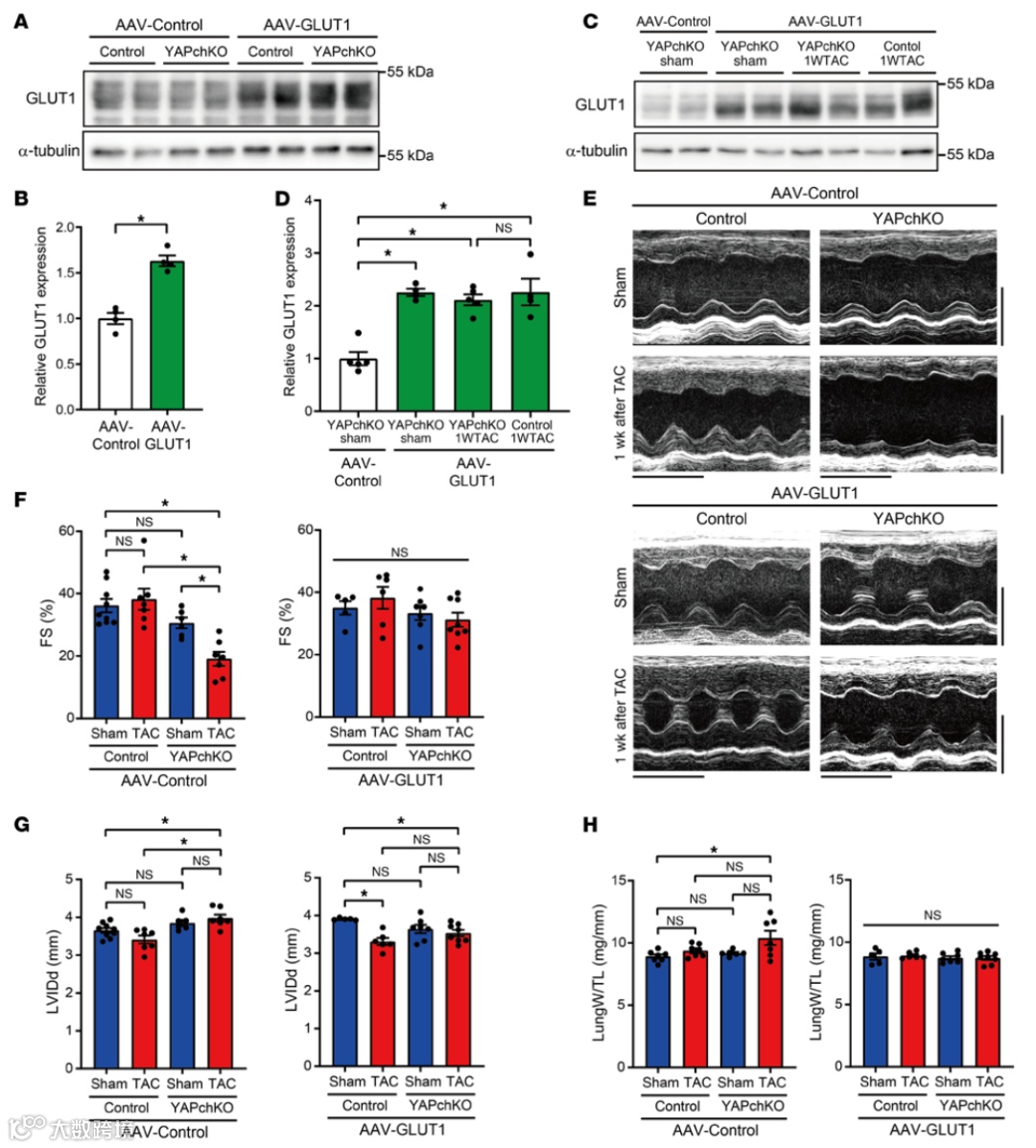 GLUT1的遗传拯救缓解了急性PO期间YAPch-KO小鼠的心功能障碍