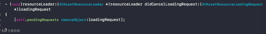 播放器发出的数据请求从这里开始,我们保存从这里发出的所有请求存放到数组,自己来处理这些请求,当一个请求完成后,对请求发出finishLoading消息,并从数组中移除。正常状态下,当播放器发出下一个请求的时候,会把上一个请求给finish。