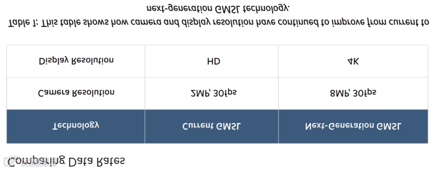 • 带宽,以备份辅助广角摄像头为例,130万像素,色彩深度18比特以及帧率30fps,包含其他诸如控制比特及直流平衡编码,需要的带宽或速率将超过1Gbps。