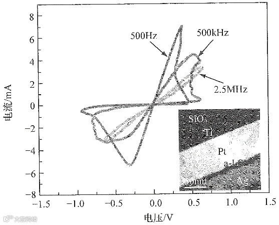 · 在双极性周期电信号激励下,器件在V-I平面的点特性为一个捏滞回线;