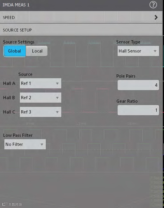 图36. 为使用霍尔传感器的系统配置示波器速度测量。