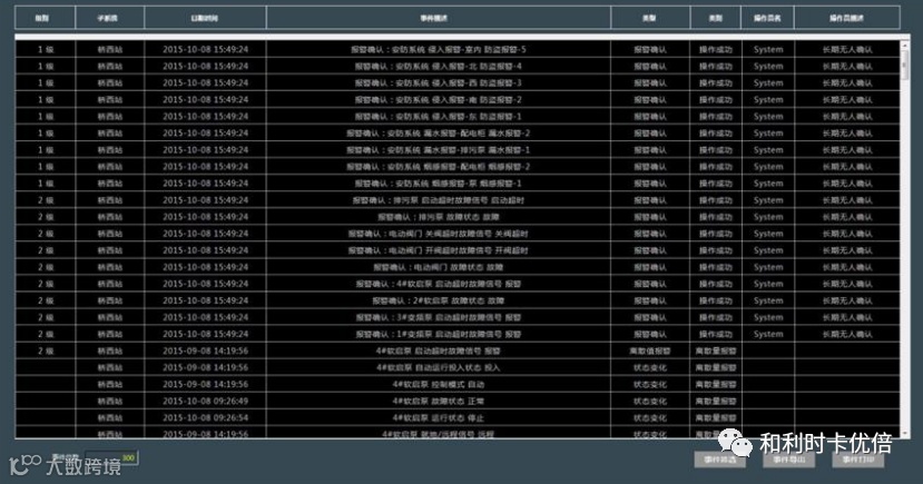 日志管理:日志是用来记录用户在系统内对用户管理、报警管理、趋势、数据修改、 远程操作设备等功能进行操作的详细信息。