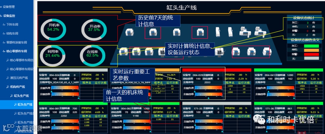 HolliSCADA通过设备互联互通的实施,奠定了车间的数字化基础,为智能工厂的建设打造了稳固的桥梁。对采集的设备数据进行开机率、利用率的统计及监控,能够有的放矢的找到两率的提升点,SCADA系统建设完成后,作为两率提升的主要抓手,使重点设备的效率得到显著提升。