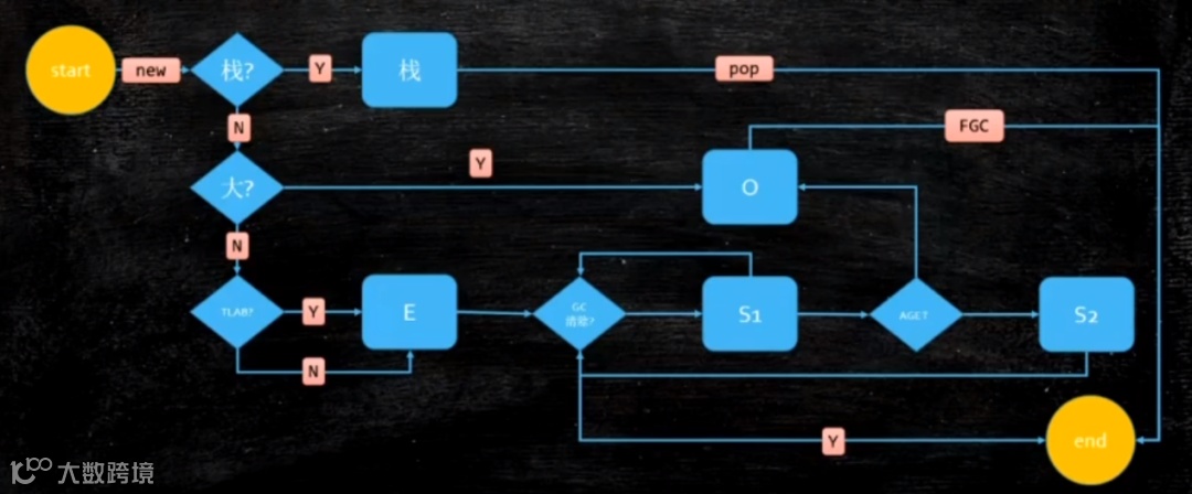 (1) 当我们new出一个对象,JVM会首先尝试往栈上分配,如果能够分配得下,就分配到栈上分配到栈上的对象有好处就是不需要GC进行管理,什么时候不需要用到此对象了,将对象出栈就可以了。但是分配到栈上的对象是有要求的:第一,对象比较小,因为栈空间本来就不够大;第二,对象比较简答。