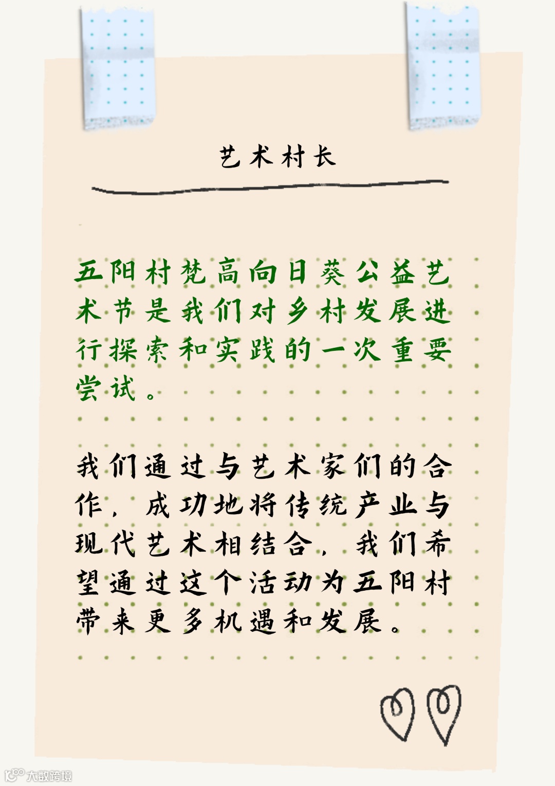 八月份的向日葵盛放在五阳村,放眼望去,如同一张张阳光的笑脸,伴着和煦的春风摇曳开放,散发出阵阵清香,宛如一片金色的花海。据介绍,此次活动将以艺术创作、写生、摄影、公益老人画等多种创作形式开展,以此来唤起人们对农村美育的关注与思考。