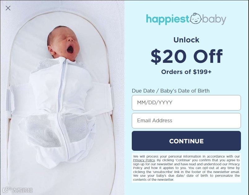 Happiest Baby通过让用户输入宝宝出生日期或预产期,来推送定制内容和阶段建议,并提供即时购物折扣。这既能提升首单转化率,同时也能降低消费者对订阅信息的抵触情绪。而“你刚好需要,我刚好懂”的触达方式,也更容易激发情感共鸣与购买冲动。