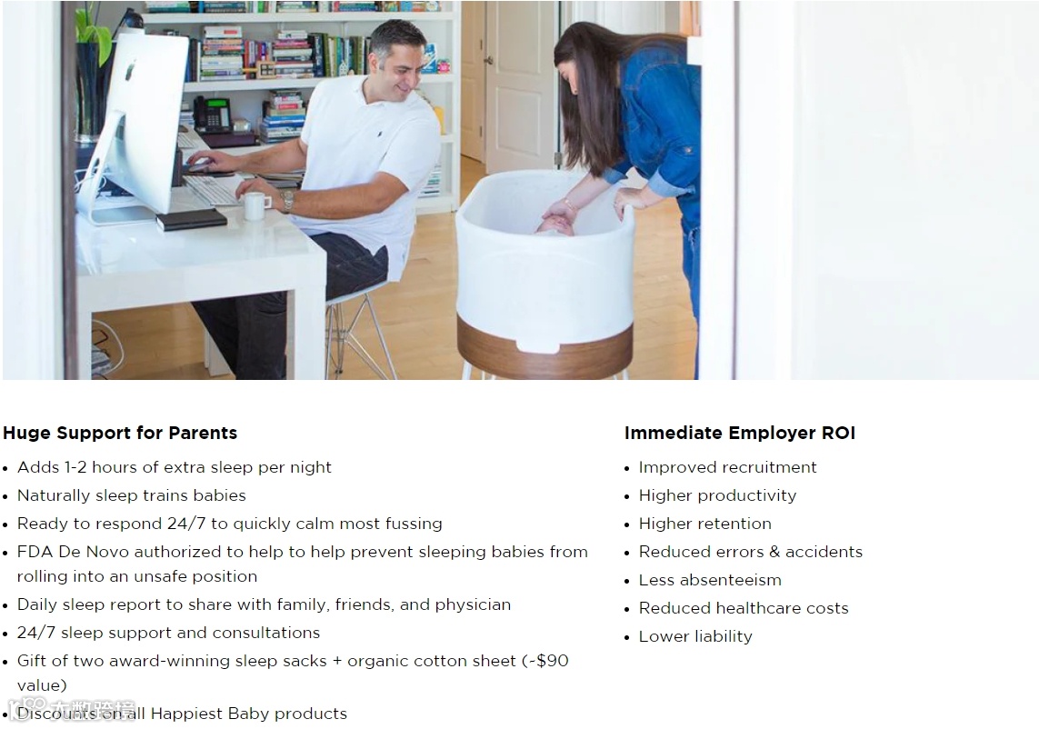 Happiest Baby不再局限于向“父母”喊话,而是将其产品,包装为一种全家庭,甚至是职场友好型工具。Happiest Baby强调其产品能够帮助提高生产力、员工留存率,通过点明对雇主的直接利益,使其成为企业福利或健康支持项目的一部分。这一策略,显著扩大了品牌的受众群,自然其就能够有效促进转化的。