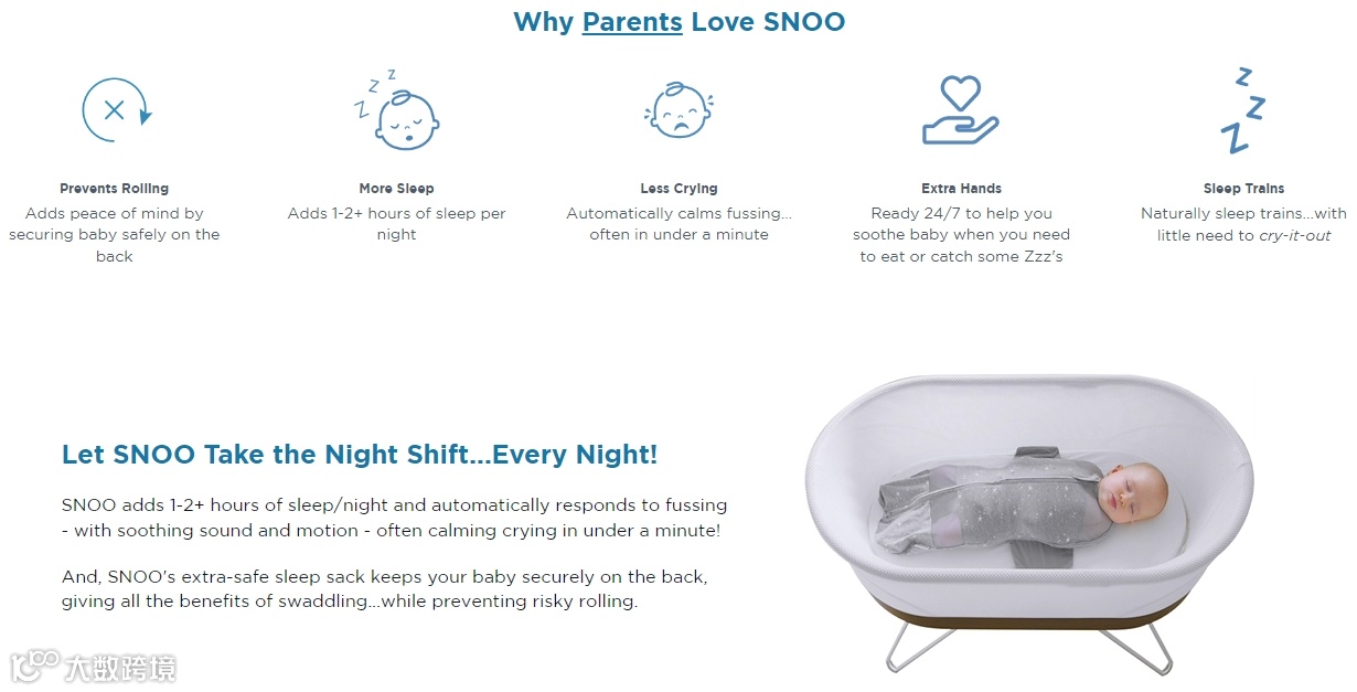 Happiest Baby强调其是获得了FDA De Novo授权的婴儿睡眠设备,这一“医疗级别”的官方背书,直接从权威角度消除了潜在安全疑虑。同时,Happiest Baby还反复强调其产品能够确保宝宝仰睡,这是能够进一步增强消费者信任感的。