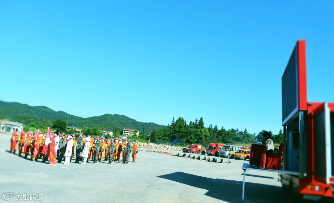 8月22日,江西省新余市森林防火救援专业队战旗猎猎向火场,精兵勇将谋打赢——“2022年新余市森林火灾扑救实战演练”在新余市仰天岗国家森林公园凯光植物园内拉开序幕(图为实战参演各专业队方阵)