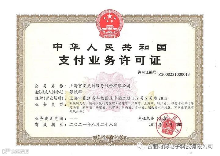 富友支付获得由中国人民银行颁发的《支付业务许可证》 此次续牌时,富友支付还合并了同属于集团旗下的富友金融网络的预付卡业务牌照,并承接其相关业务,富友支付各项业务均在稳定有序开展中。自2011年获颁《支付业务许可证》至今,富友支付一直致力为各类企业提供优质的综合支付解决方案,包括智能POS、扫码支付、国内网银B2B/B2C、国际网银B2C、手机认证/快捷、代收/代付、收汇/付汇、信用卡还款、便民缴费等综合支付解决方案,年受理交易规模达万亿。