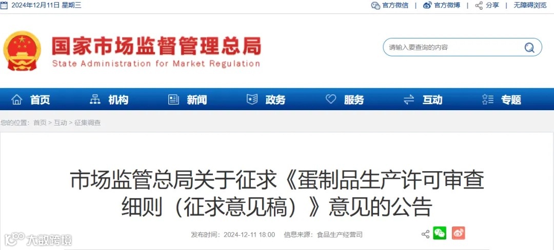 13.国家市场监管总局关于征求《蛋制品生产许可审查细则(征求意见稿)》意见的公告