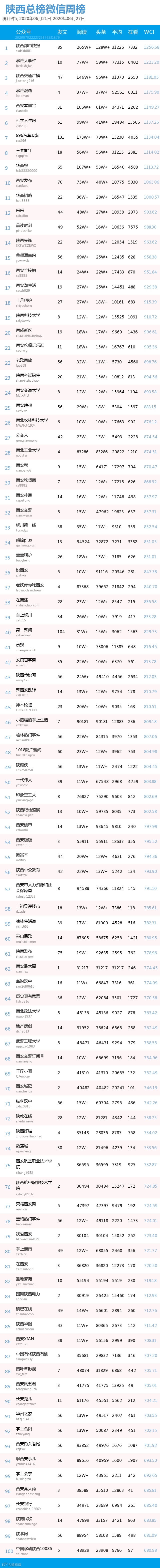 最新陕西微信公众号总榜周榜100强重磅出炉!TOP100上周共计发文2784篇,阅读总量达2457万+,在看总量13万+。各项数据相比上期有所下降,希望下期各大平台再接再厉!(查看榜单可直接下滑)
