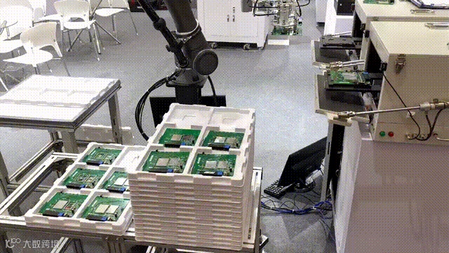 该场景是一对多台屏蔽箱的RF 多功能测试站实际案例展示, 采用TM机器人内建视觉优势 + TM Landmark 2.5D 独特技术,使传统复杂的系统开发整合操作简单化,一机多用,弹性灵活,节省整合系统开发周期和整合成本(节省两个上下升降料塔,一个上位主控机及通訊交互软件)。