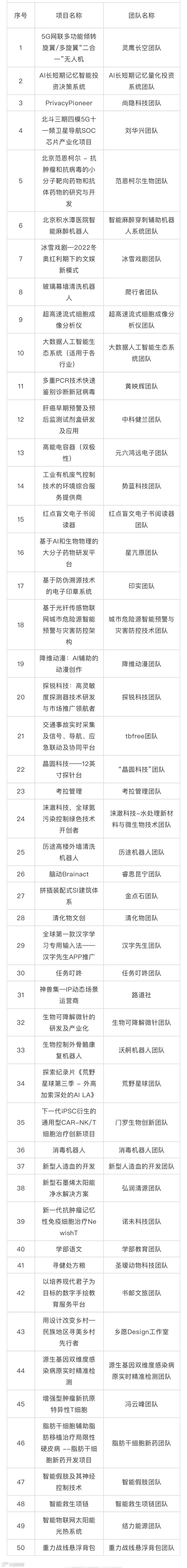 创客组50强项目名单