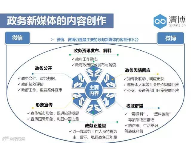 清博曾统计,2017年两会期间国务院客户端、中国政府网原创产品近70篇,在全网引发转载狂潮。在中国政府网微信上,20余篇原创作品阅读数突破10W+。