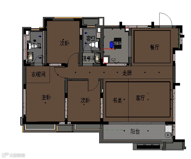 首先要通过原始设计文件及竣工图纸确定项目户型,仔细核对户型差异,尤其在部分楼层的户型变异,如一层、顶层。依据BIM版使用说明书的实用性而言,相同功能房间布置,由于管线排布方式、门窗、固定家具等配置不同,应作为变异户型另行创建。