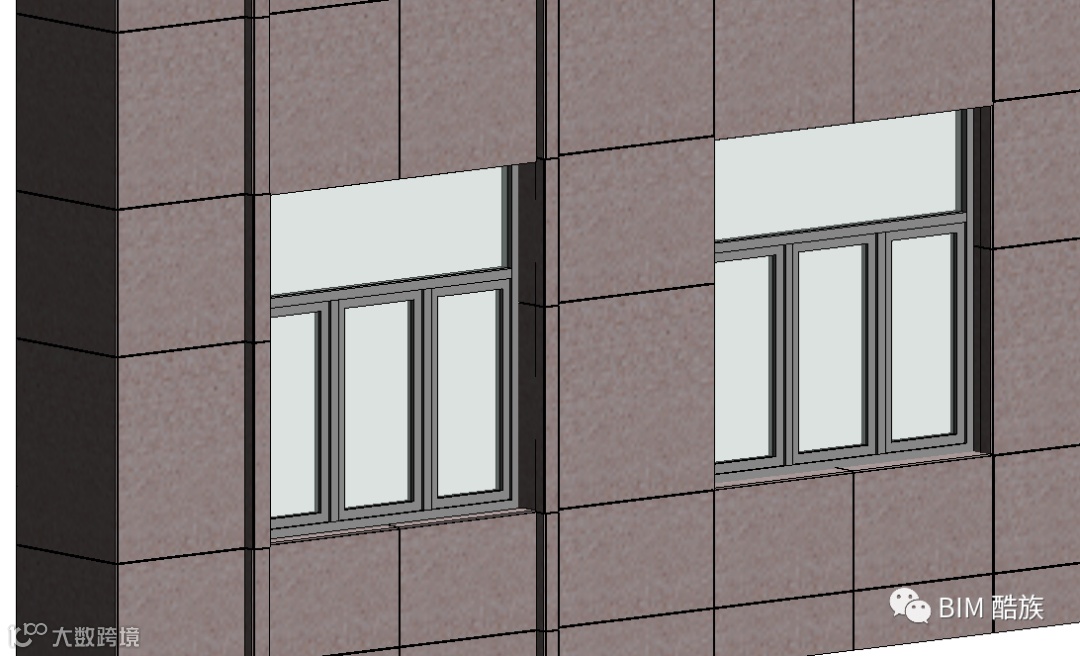 采用公制幕墙嵌板族样板文件创建的构件,可以自适应填充幕墙网格,形成幕墙。常规幕墙嵌板均为矩形平面嵌板。但实际工程中,设计师根据建筑外立面效果的需要,常设计出异形及不规则形状的嵌板。如本项目中所设计的窗套装饰线条。