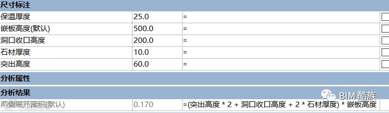 该面积并不是实际的工程量,因此需要增加两侧石材展开面积。因此我们需要在参数中增加“两侧展开面积”的计算参数。