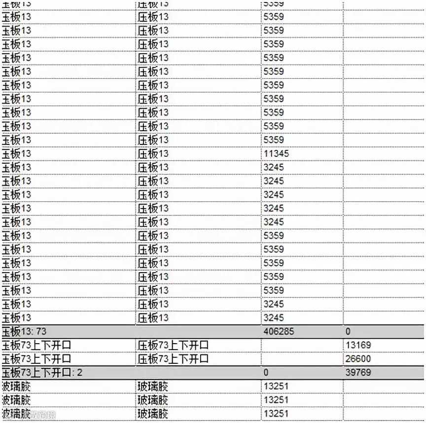 5、通过明细表统计常规模型相关工程计量参数字段。Revit明细表快速统计出玻璃嵌板、铝合金龙骨、玻璃附框、方钢通龙骨等工程量。