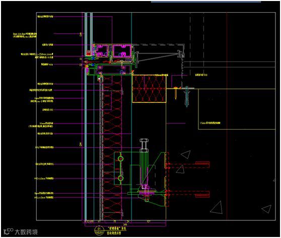 此族为某项目幕墙层间构造幕墙单元版块的立柱系统,该单元版块包括了横梁、立柱、幕墙嵌板、衬板、层间防火岩棉等。