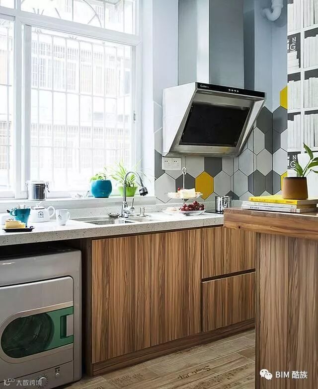 台面、瓷砖尽量选择易清理的款式,可以适当舍弃厨房面板的纹理,最大程度保证室内表面光滑,缓解日常打理难度。有的人因为喜好原因选了复古砖,说起来都是泪水,“平整最好,不要搞什么艺术了。”