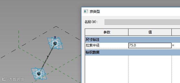 是不是这个族特大,以至于将视图比例调整到1:2000都看不清相关尺寸标注。甚至在三维视图里都看不半径为75的拉索的样子。