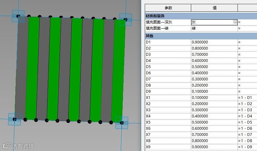 对此,我们暂且使用Revit基于填充图案公制常规来表达嵌板材质。对于复杂的填充图案,应该采用其他解决方案。