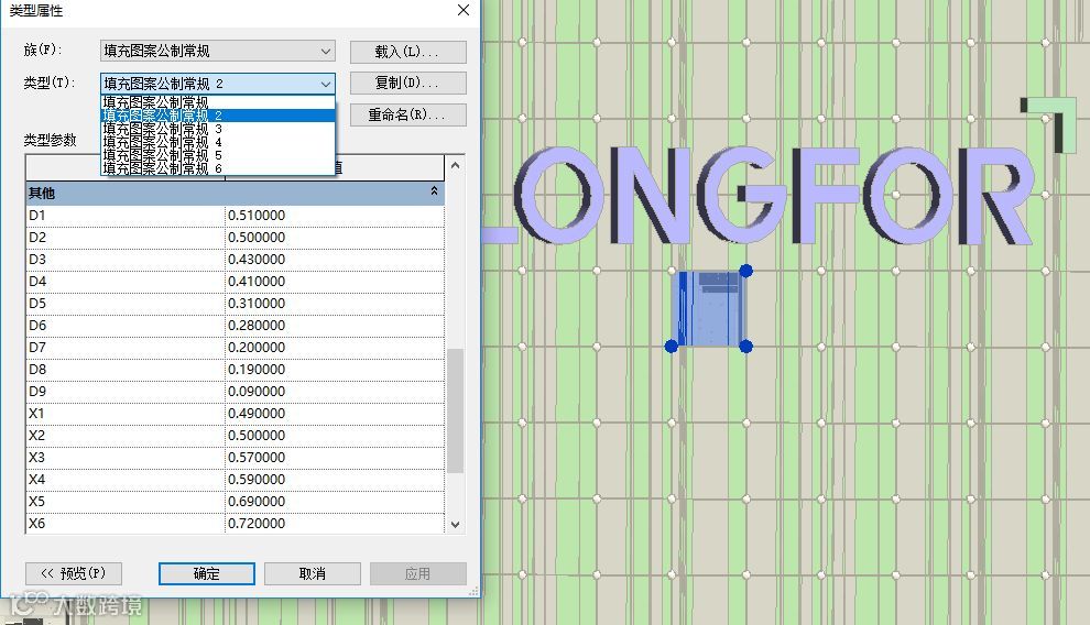 由于前期幕墙均采用建筑墙—幕墙创建,并根据不同嵌板类型,创建了大量的幕墙嵌板族。因此,就填充图案,尝试采用基于填充图案的公制常规进行创建。