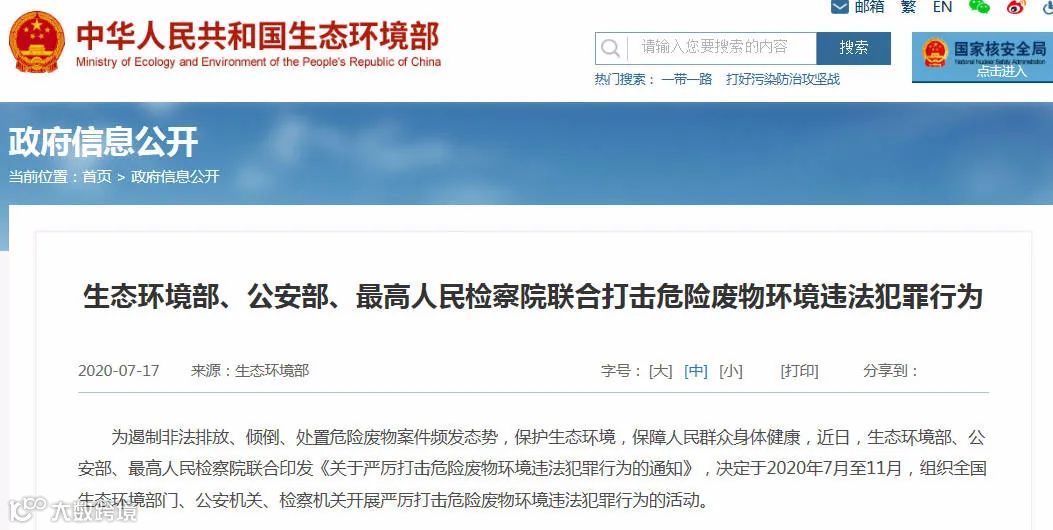 《通知》指出,针对部分地区、部分行业涉危险废物环境违法案件多发态势,各地要突出重点行业、重点地区、重点行为,认真摸排、重点监管,及时发现环境违法犯罪线索;专案办理、精准打击,严惩一批涉危险废物环境违法犯罪大案要案;铲除非法收集、利用、倾倒、处置危险废物链条,严厉打击违法犯罪分子的嚣张气焰,坚决遏制此类案件多发势头。(来源:废塑料新观察)