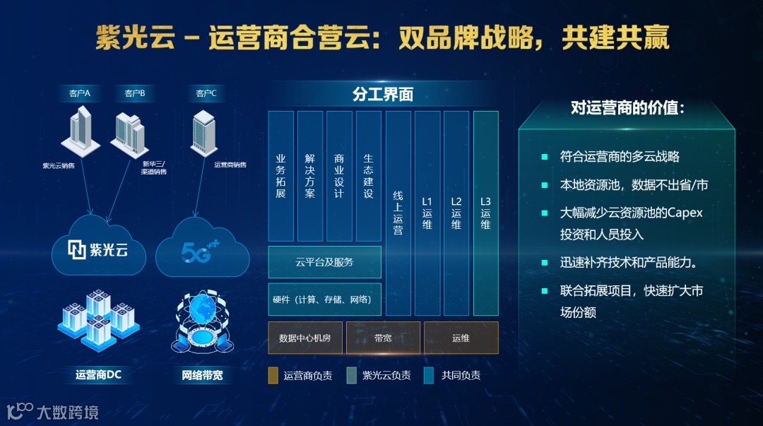 “运营商合营云”是紫光云契合移动伙伴大会背景和主题,重点向各界展示的产品解决方案。运营商合营云与运营商联合构建、联合运营,实现优势互补,由紫光云提供专业的本地化运维服务、等保三级机房环境;运营商提供全域优质链路资源覆盖;采取“一级节点+城市节点”的两级架构模式,确保客户数据本地存储,关键数据不出城,实时保障客户数据安全;此外紫光云支持部分定制开发以满足各类型客户需求,结合强大的MSP团队对客户实际业务需求进行实际调研,开展业务梳理,结合强大的研发能力,完美契合客户实际业务需求,有效助力百行百业数字化转型升级。