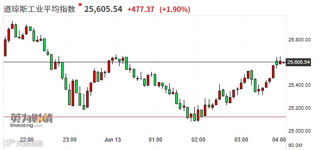 美东时间周五(6月12日),美股大幅震荡,最终三大股指全线收涨,道指涨1.90%,标普500指数涨1.31%,纳指涨1.01%。