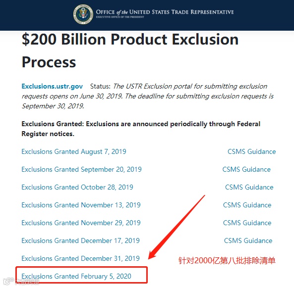 公告及涉及产品下载地址:https://ustr.gov/sites/default/files/enforcement/301Investigations/%24200_Billion_Exclusions_Granted_January_31.pdf