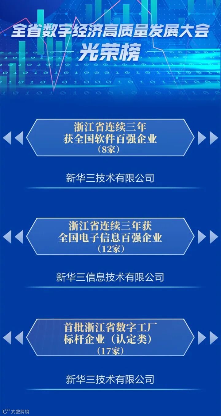 7月13日,浙江省召开全省数字经济高质量发展大会,紫光股份董事长兼新华三集团首席执行官于英涛受邀出席并发言。本次大会公布了“全省数字经济高质量发展大会光荣榜”,新华三集团荣登“浙江省连续三年获全国软件百强企业”、“浙江省连续三年获全国电子信息百强企业” 及“首批浙江省数字工厂标杆企业(认定类)”榜单,充分彰显了在引领数字产业发展上的卓越成就。