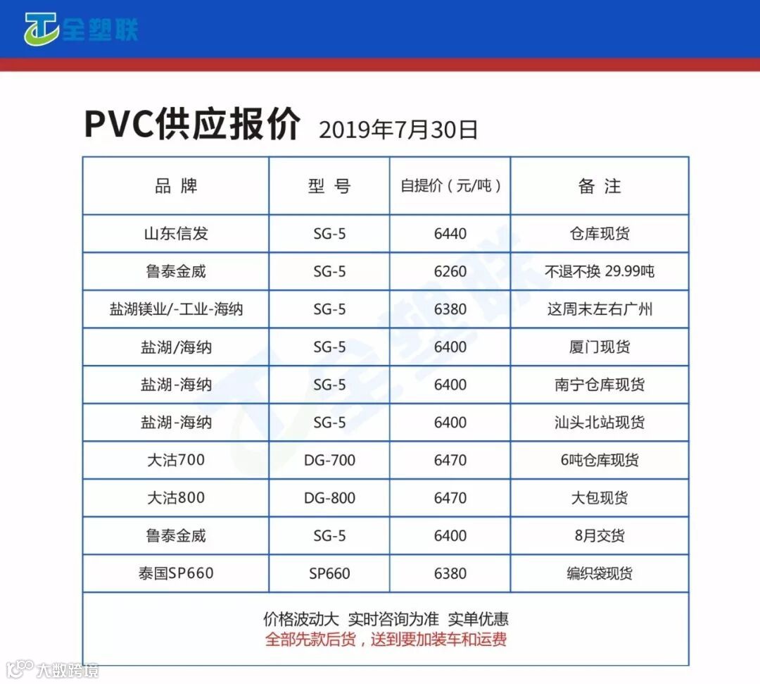 PVC原料报价: