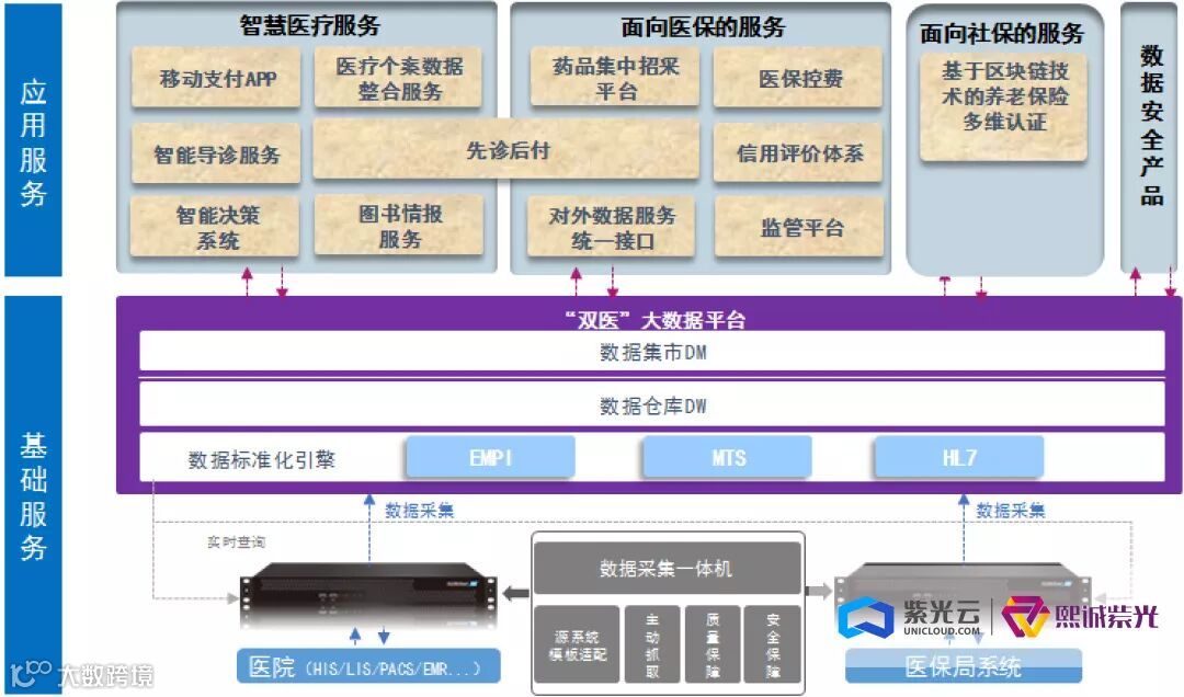 熙诚紫光数字医疗产品——“双医大数据平台”为互联网+人社和智慧医疗提供从数据到平台到应用、从政策落实到监管提供全方位解决方案,打造标准化、可复制、可快速推广的健康大数据平台,助力推动我国社保、医保公共服务平台的建设和推广工作。