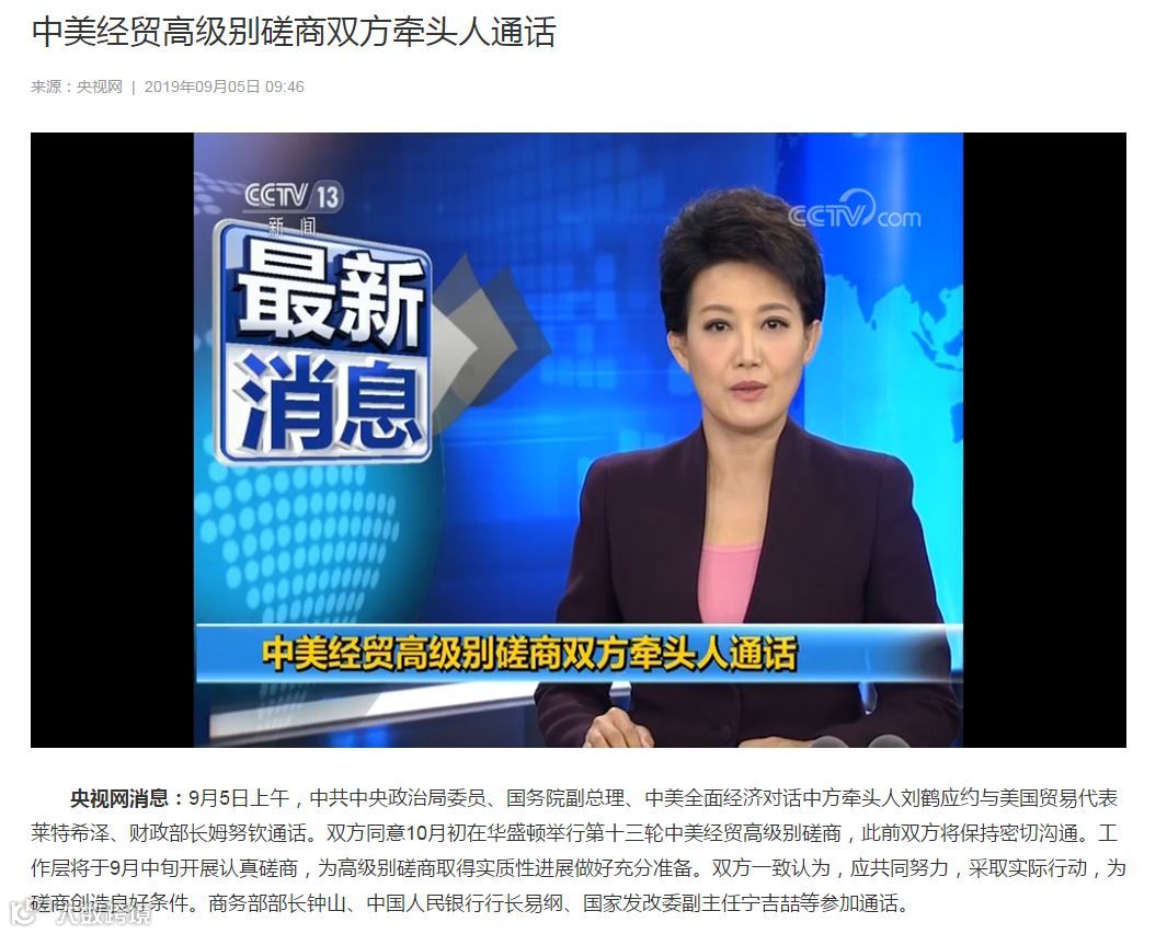 开盘前,央视新闻客户端发布中美经贸高级别磋商双方牵头人通话消息: