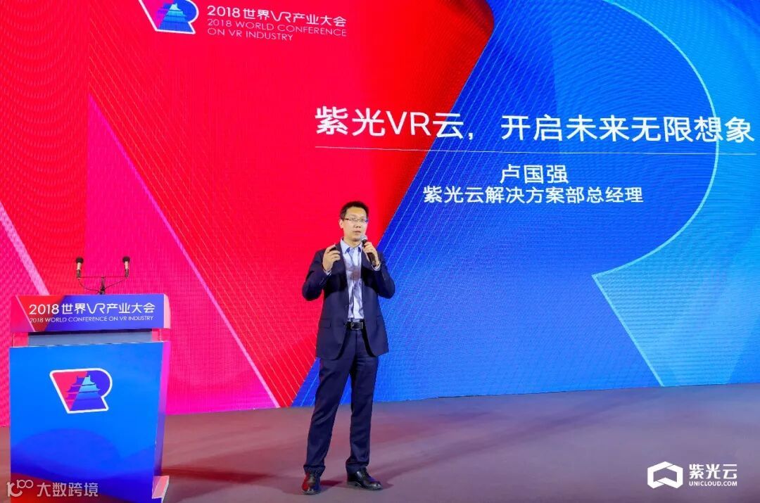 10月19日 南昌, 由工业和信息化部与江西省人民政府共同主办的以“VR让世界更精彩”为主题的2018世界VR产业大会正式拉开帷幕。紫光集团高级副总裁、紫光股份有限公司总裁王竑弢参观紫光VR云核心节点并做出讲话,紫光云解决方案部总经理卢国强受邀出席此次大会,并做出主题演讲。