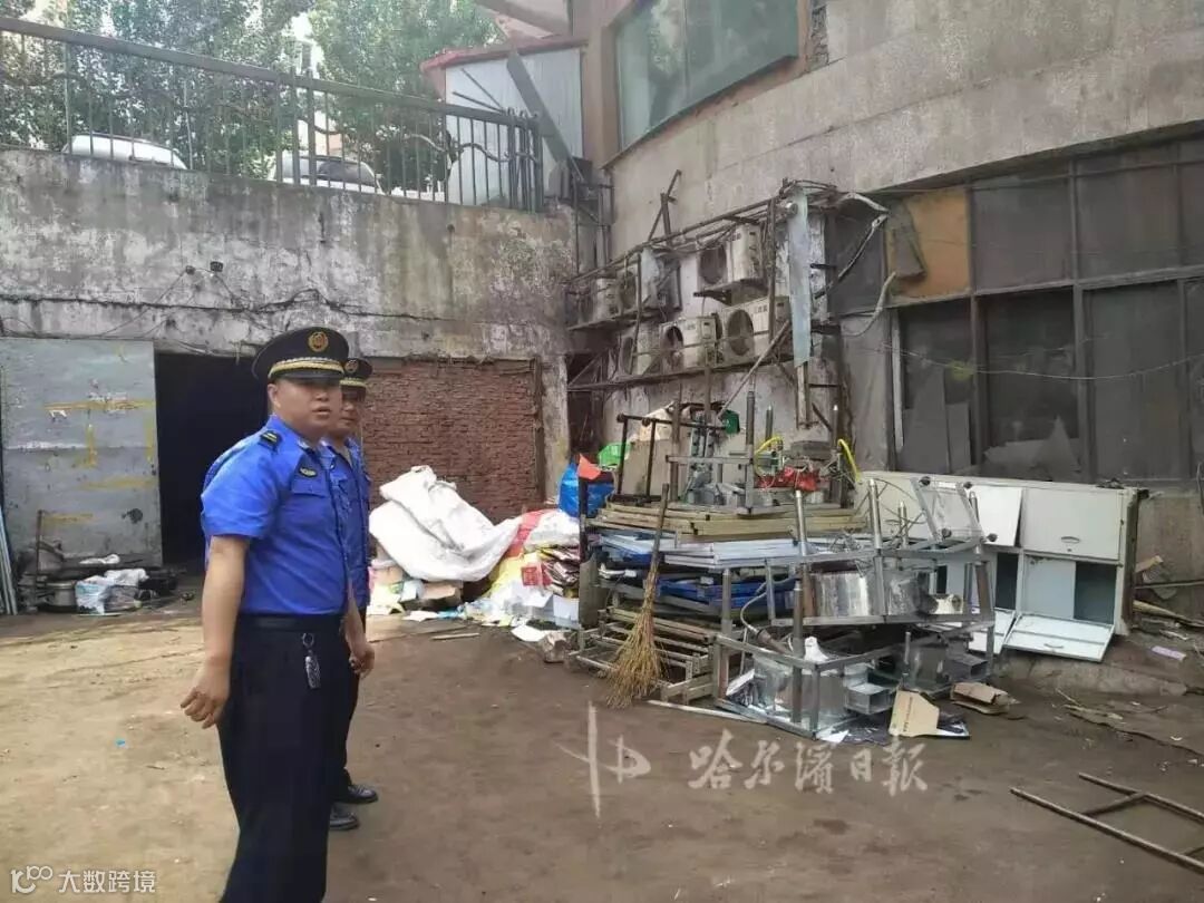 据悉:该废品收购站有营业执照,但根据哈尔滨市相关规定,有照废品收购站也必须迁往四环外,更不可在居民区里经营。有关部门在6月初已经对其下达迁移通知,目前自行迁移最后期限已经过了,所以对其进行强制迁移。