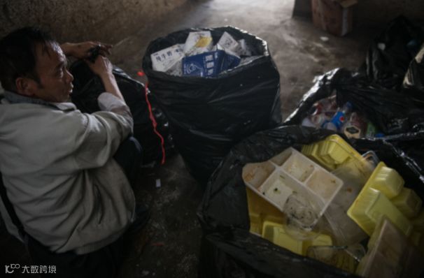 “废半天功夫挣几分钱,不值的,”40岁的任勇说,他在上海市中心一栋办公大楼内收废品。他说他会把外卖餐盒扔掉。