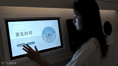 在吴雅的展厅中,可以看到很多瓷器、古币、服饰等物品,在展柜旁还有相应的触摸屏,用户可以通过触摸屏了解到其中物品的详细情况。