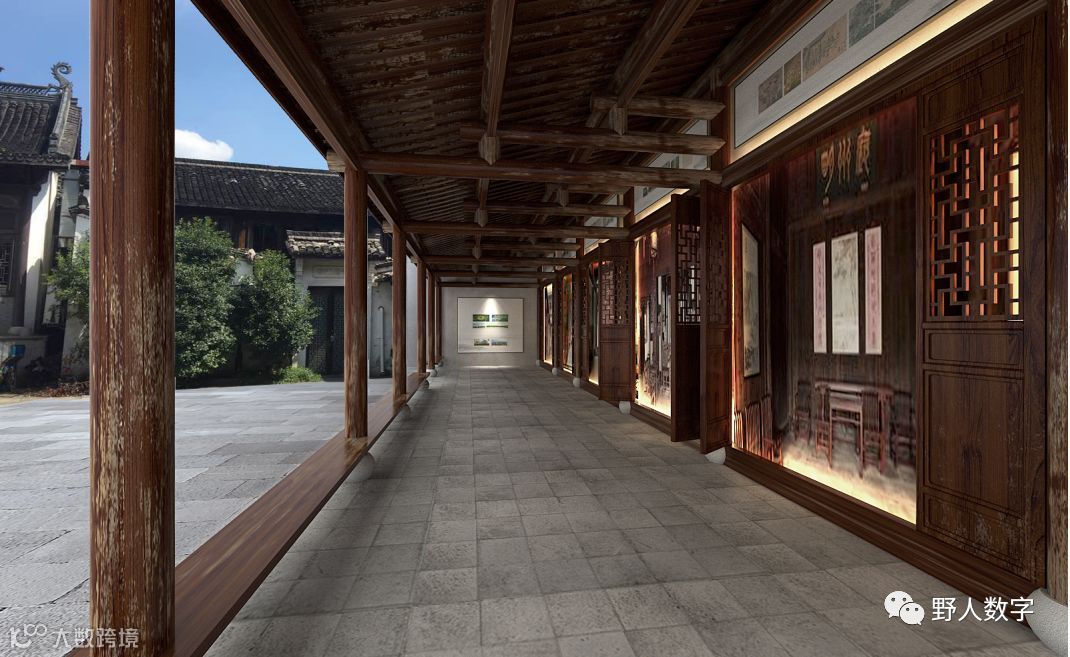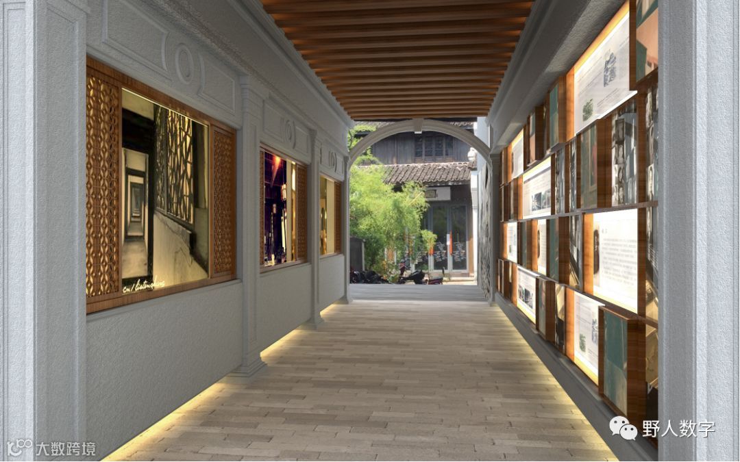 走廊与仿真绘画的街景巧妙的融合,