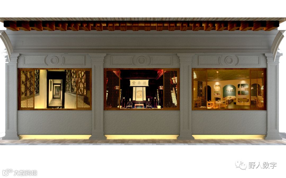在廊道中间位置,墙面设计成一街景效果,